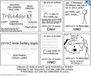 In practice, all those password rules have made it easier for the cybercriminals, and harder—and less secure—for the user, as this XKCD webcomic illustrates.